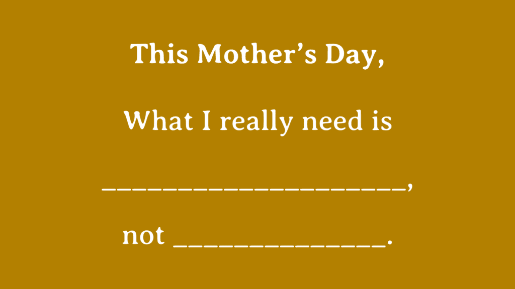 If this Mother’s Day were everything you wanted, what’s the very first thing that happens when you wake up? Not what sounds nice. What you actually want. Write it down.